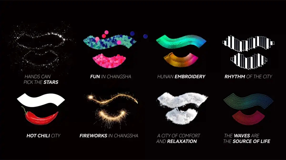 簡單明了的圖形結構為各種擴展設計提供了極大的趣味性。微笑符號可以通過創意的插圖、攝影照片等多種形式進行替換,增強了城市多元文化的傳播力和影響力。這樣的設計不僅易于識別和記憶,還能激發人們對長沙文化旅游的濃厚興趣和向往。