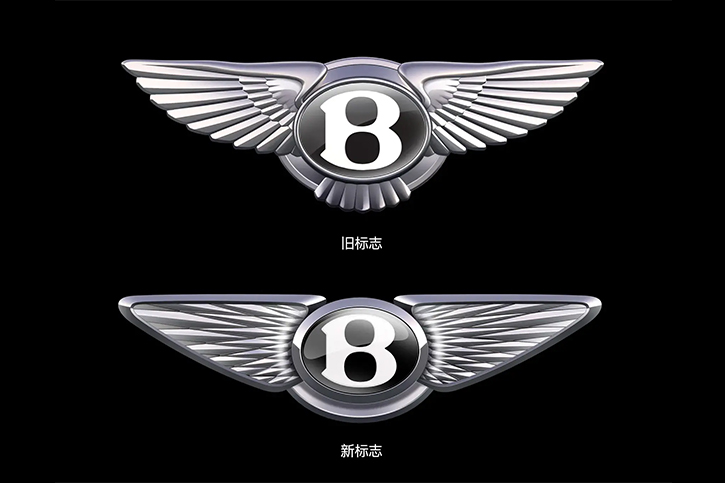 2025年7月1日,賓利汽車全新設計的B字飛翼車標正式亮相。相比現有車標,新車標依然保留了其標志性元素,但整體視覺風格由「寫實復古」轉向「簡潔現代」。舊版車標的羽毛根根分明,新版翅膀上的羽毛圖案變成了銳利的網格線條,B 字底部的尾羽完全移除,提供添加一圈黑色的描邊,翅膀的整體形狀呈現出更加圓潤的狀態。