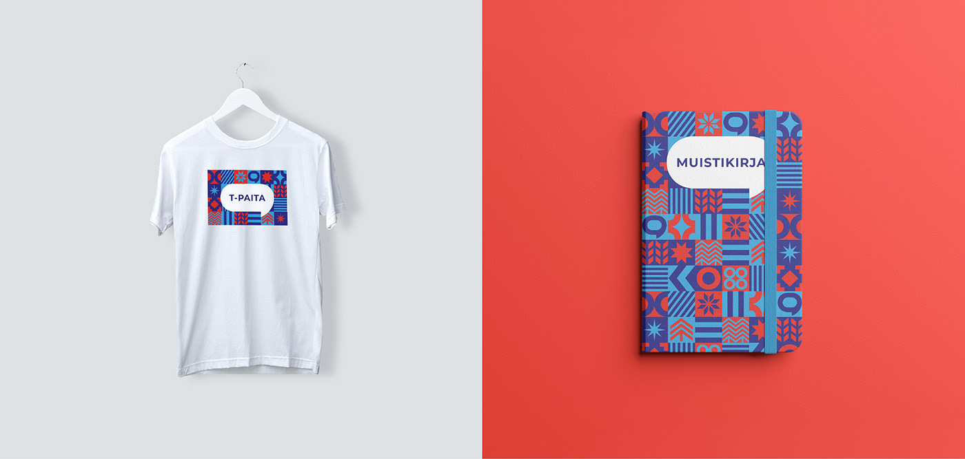標(biāo)志設(shè)計中以對話云和芬蘭語身份載體的名稱-被用作主要內(nèi)容。例如,在對話框云中的T恤上寫著“T-Paita”,意思是芬蘭語中的“T-恤”。因此,即使在課堂之外,學(xué)習(xí)過程也在繼續(xù),因為在你的項目上記住一個單詞是非常容易的。