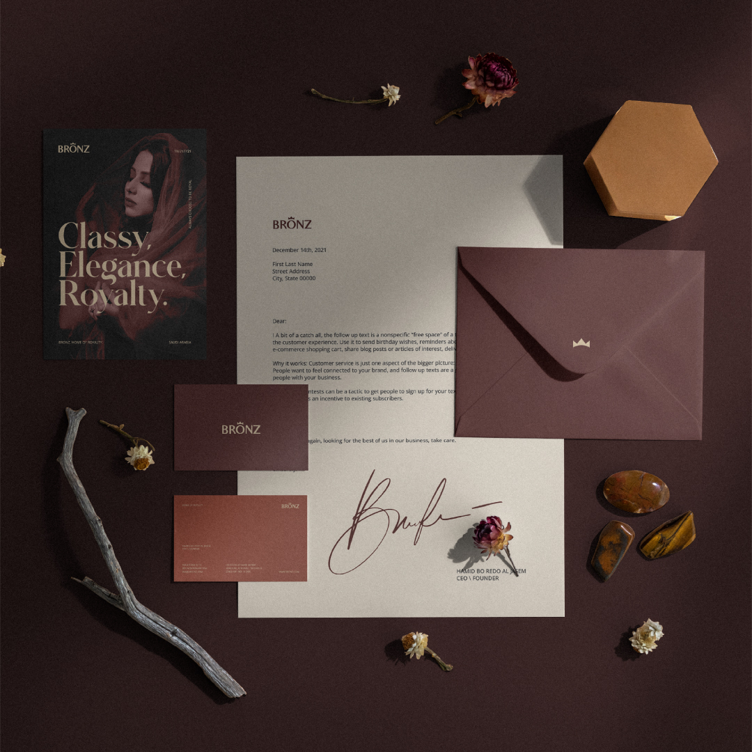 BRONZ香水公司VI形象設(shè)計(jì)在沙特阿拉伯/利雅得成立,經(jīng)營(yíng)時(shí)尚和香水領(lǐng)域,生產(chǎn)符合國(guó)際規(guī)格的高質(zhì)量香水。目標(biāo)觀(guān)眾是女性,她們只想用帶有皇室氣息的獨(dú)特體驗(yàn)和配飾來(lái)生活。應(yīng)該指出的是,該品牌VI形象設(shè)計(jì)h中希望將許多情感和名稱(chēng)與其品牌聯(lián)系起來(lái),如(皇家的、迷人的、耀眼的、與眾不同的、神秘的、有影響力的、自信的…)。