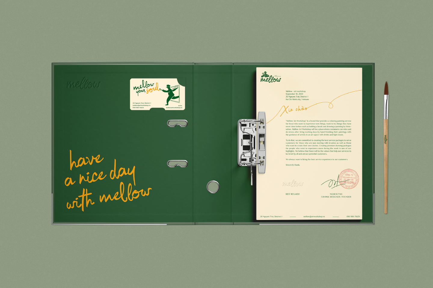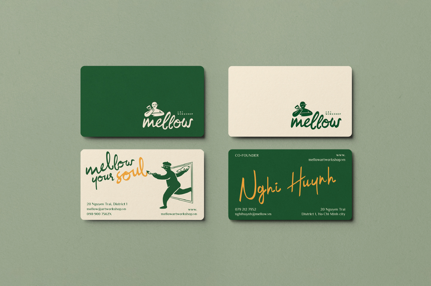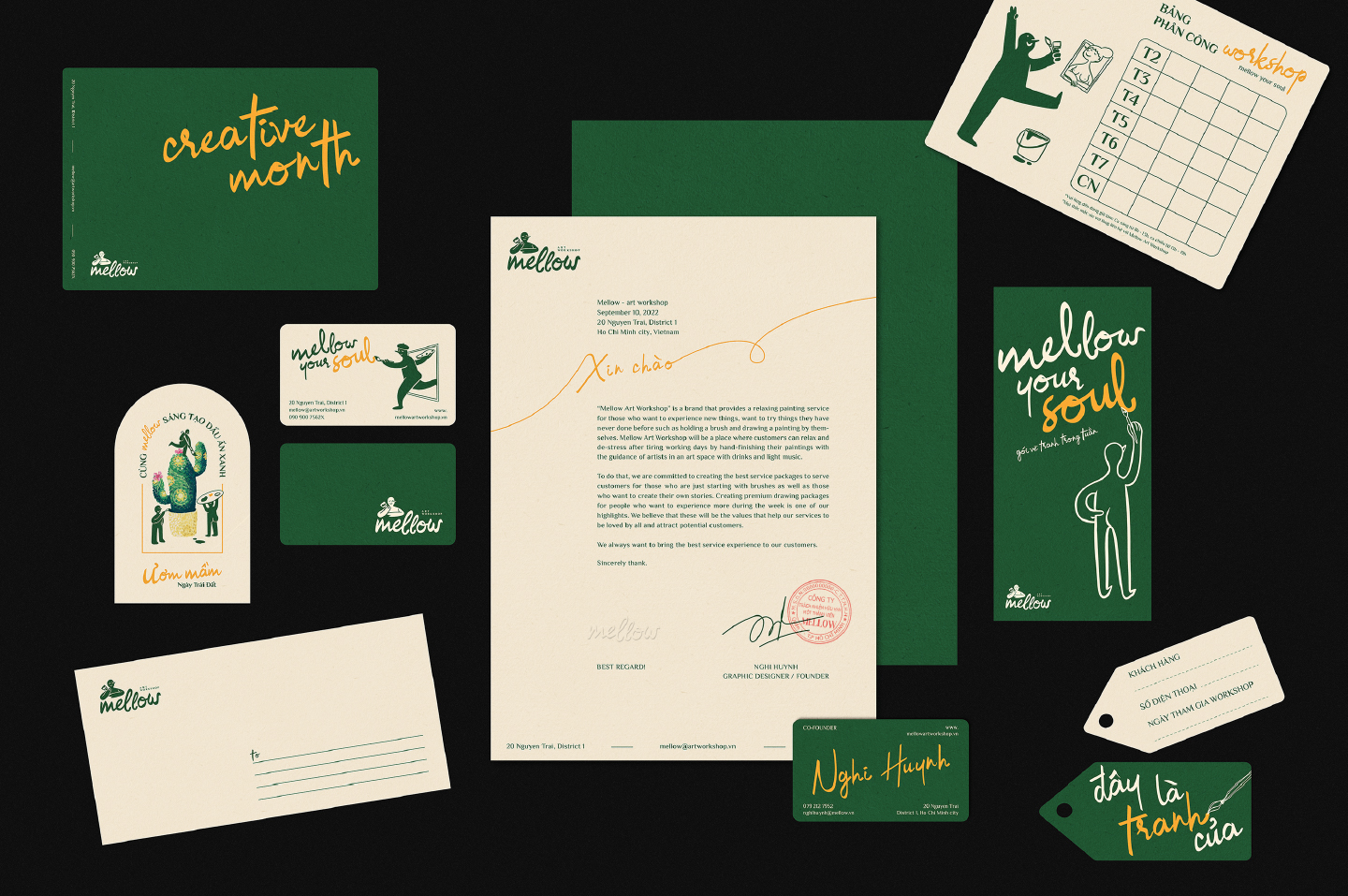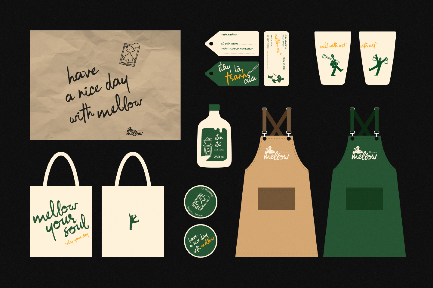 Mellow是越南西貢的一個新品牌形象設計,提供輕松的繪畫服務以及周末的輕柔音樂、超靈活的藝術空間、熱帶飲品等。來到 Mellow 時,您不必成為藝術家,您所需要的只是對藝術的興趣和以新方式表達自己的愿望。我們的座右銘是:“無論您的工作如何,客戶在 Mellow 的繪畫體驗質量一直是我們的榮幸。”