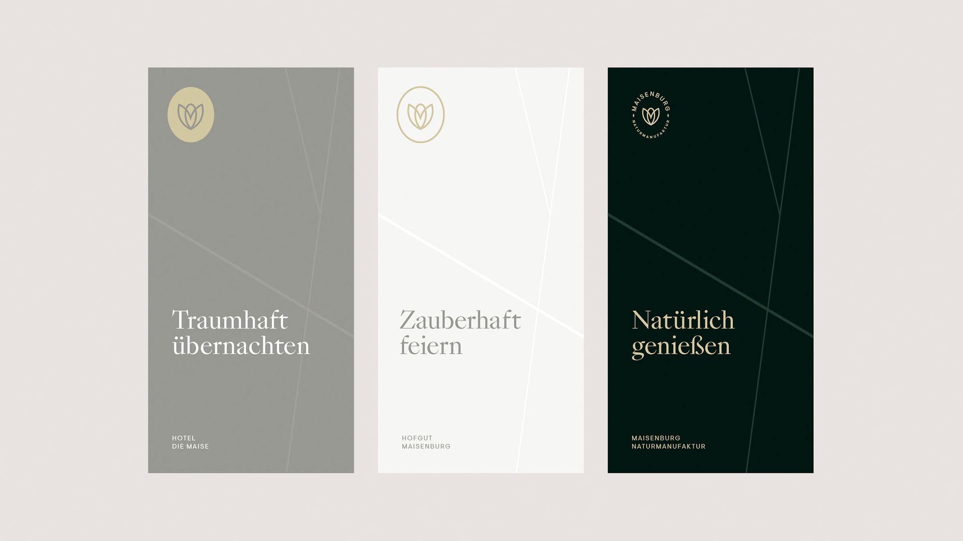 一個新品牌VI形象設(shè)計的慶祝時刻——這直接適用于所有 3 個 Maisenburg 品牌。新標(biāo)志設(shè)計:將 Maisenburg 的 3 個世界結(jié)合在一起的風(fēng)格山雀:Hofgut、制造廠和酒店?;ǖ男螤罱Y(jié)合了自然和莊嚴(yán)的場合。印章結(jié)合了傳統(tǒng)與現(xiàn)代。 通過企業(yè)色彩,我們支持具有自然魅力的氛圍,并使用新婚夫婦的經(jīng)典色彩世界。作為附加的設(shè)計元素,參考玉米和山雀的自然環(huán)境使用了圖案。