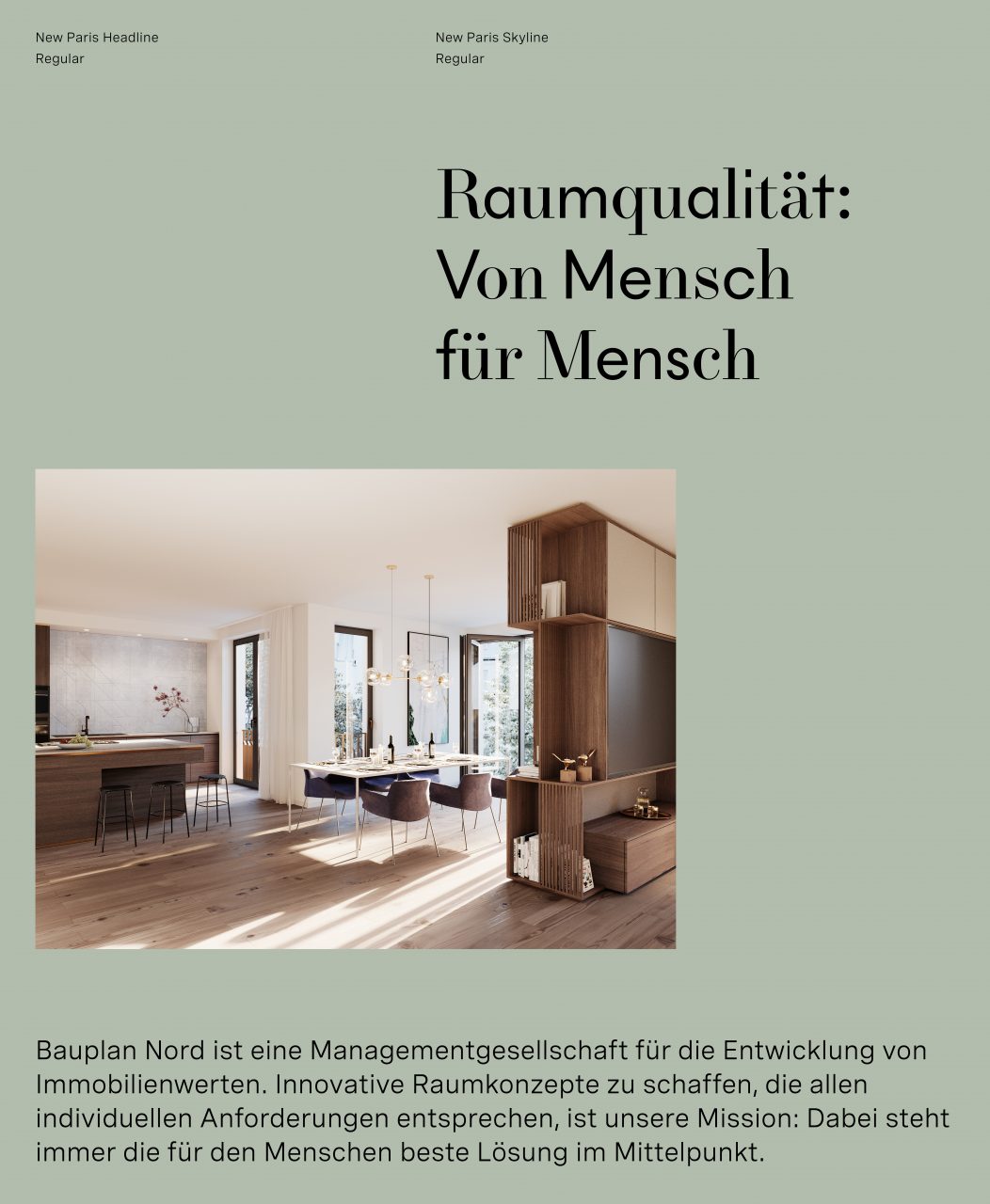 BPN-我們不開發(fā)房地產(chǎn),我們開發(fā)您的家——這是 20 多年前在弗倫斯堡成立的 Bauplan Nord 的信條,它為自己創(chuàng)造了一個名字。我們的任務(wù)是設(shè)計一個優(yōu)雅而現(xiàn)代的企業(yè)VI形象設(shè)計,以紀念這個家族企業(yè)的火炬?zhèn)鬟f,以及他們的辦公室擴展到漢堡。文字商標被賦予了當代媒體需求所需的靈活性,同時保持了公司的穩(wěn)定性和高質(zhì)量標準。新的配色方案既舒適又引人入勝,并得到了排版的稱贊——古色古香的“FS Brabo”和怪誕的“Spezia”的組合。