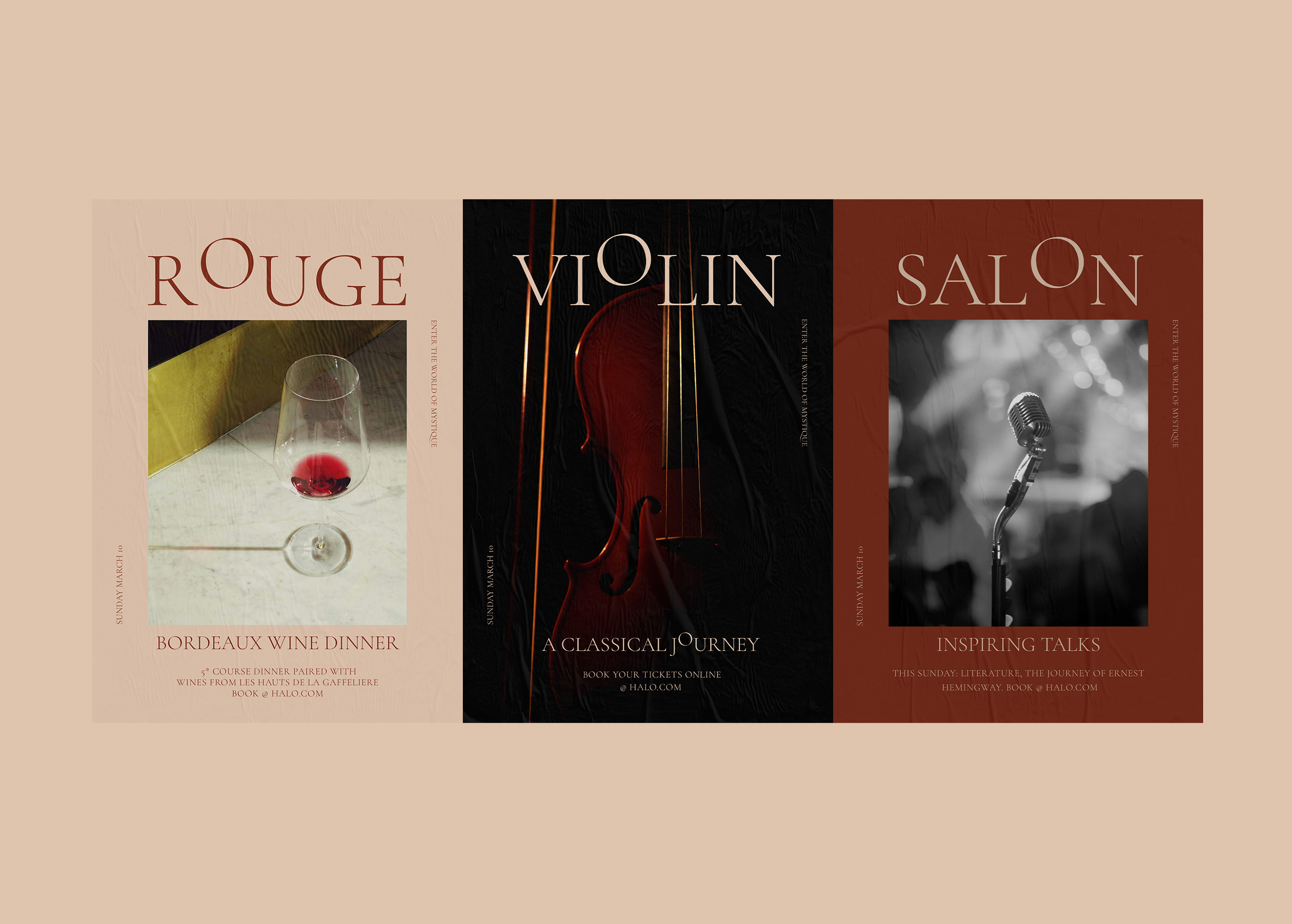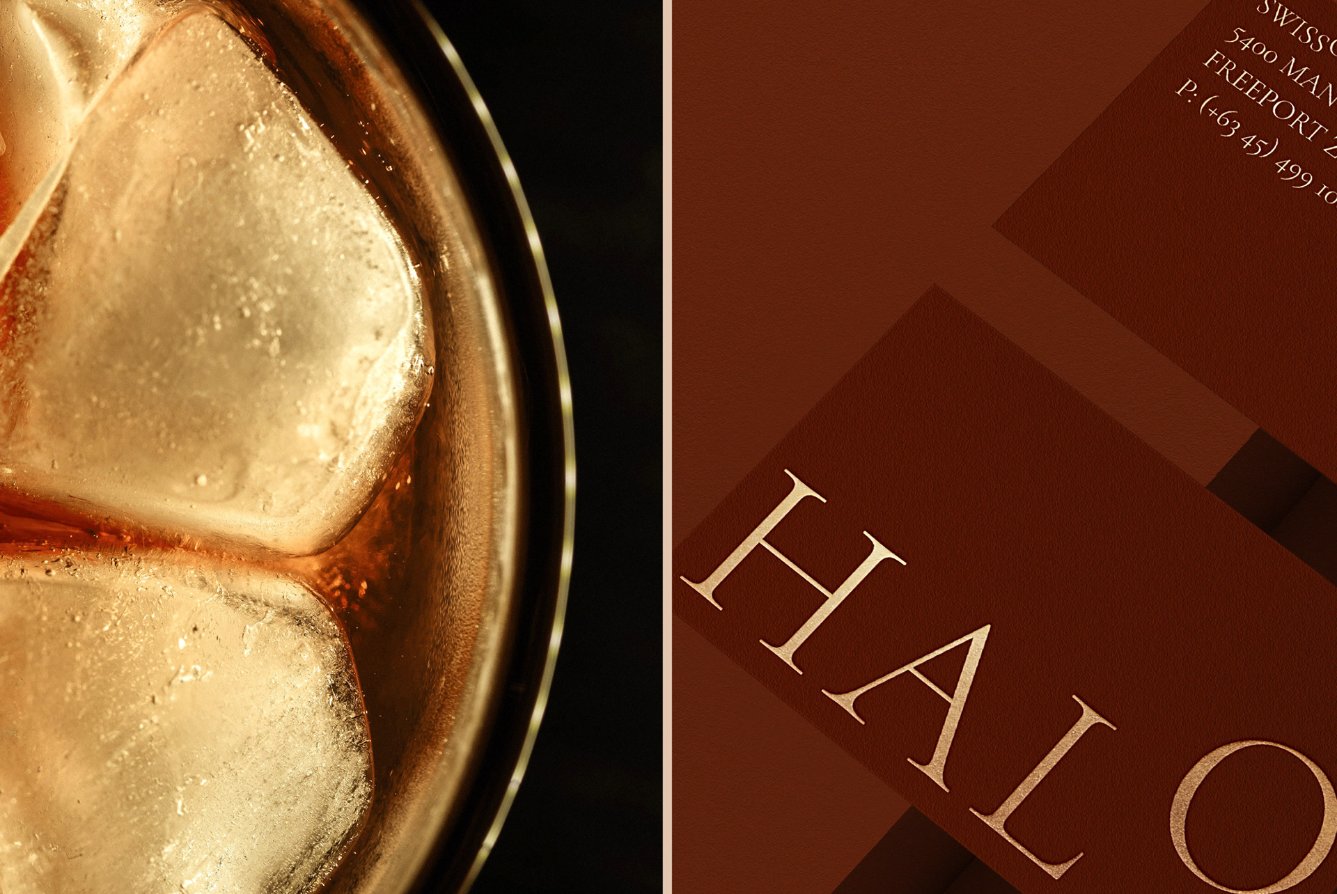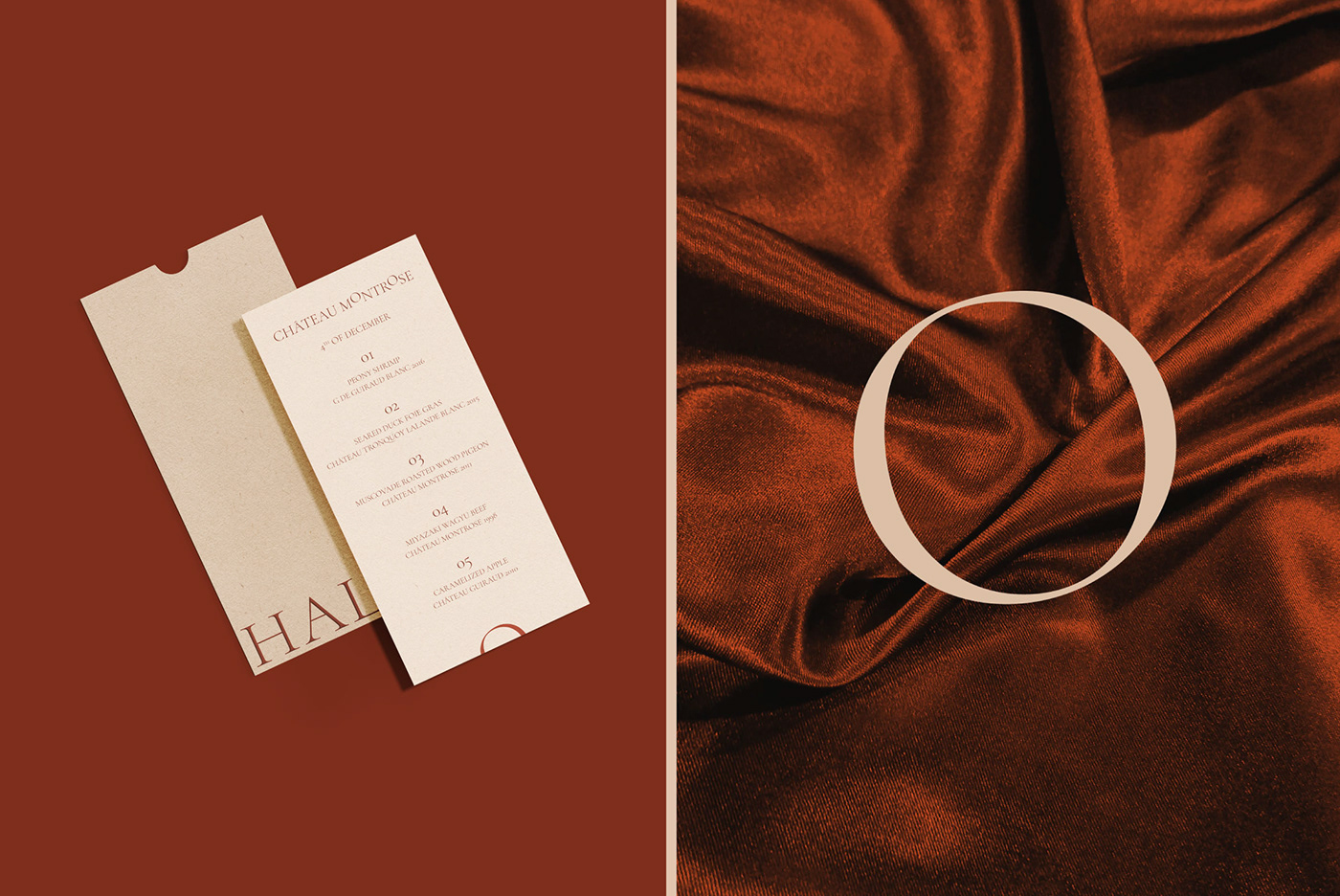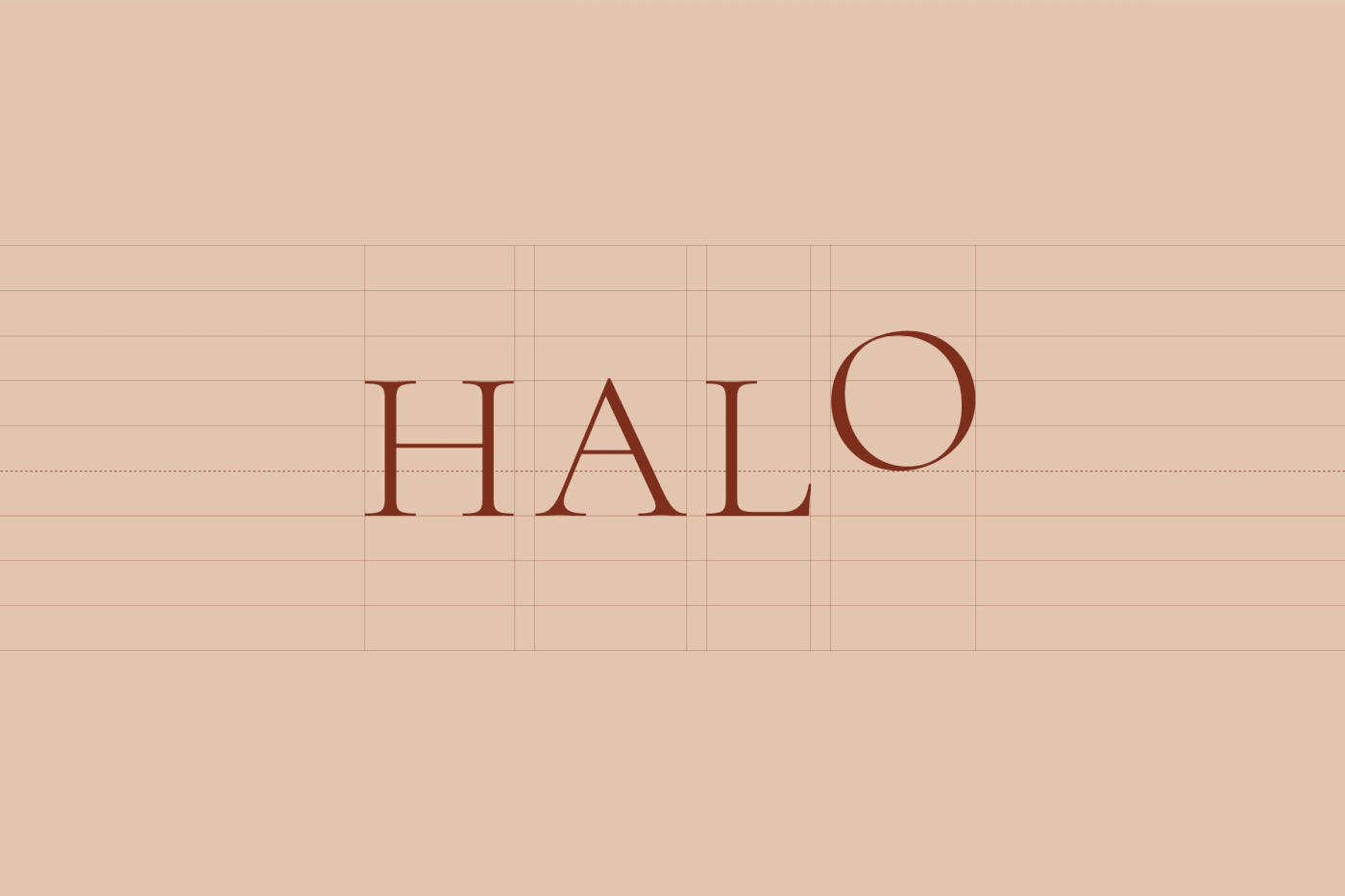 標志設計使用現代無襯線字體形成,以反映酒吧本身的優雅和聲望。與字標的其余部分相比,完美圓潤的“O”突顯出來,以強調 Halo 是一種超凡脫俗的體驗。整體設計簡潔明快,以保持酒吧的優雅。