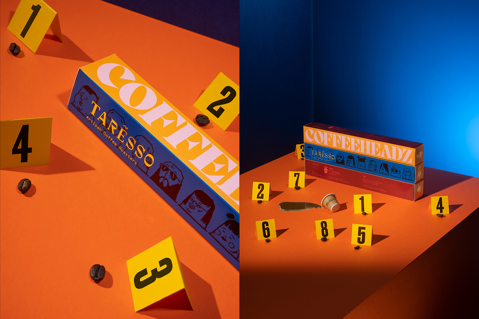 我們的任務是為希臘特色咖啡品牌 Taresso Artisan Coffee Roasters 設計膠囊系列包裝設計。由于咖啡是一種將來自不同人口統計和背景的不同人聚集在一起的公共體驗,因此我們強調了他們個性的不同方面。這些插圖描繪了 10 張不同的面孔,你不想在晚上在空蕩蕩的街道上穿過它們,它們是為了向漫畫致敬,適合膠囊的大小。這些是 Coffeeheadz,前衛,有時具有威脅性,但由于他們共同認識到咖啡是一天中的特殊時刻而統一起來。信息簡單明了:在咖啡杯周圍,即使是最可疑的面孔也變得熟悉起來。