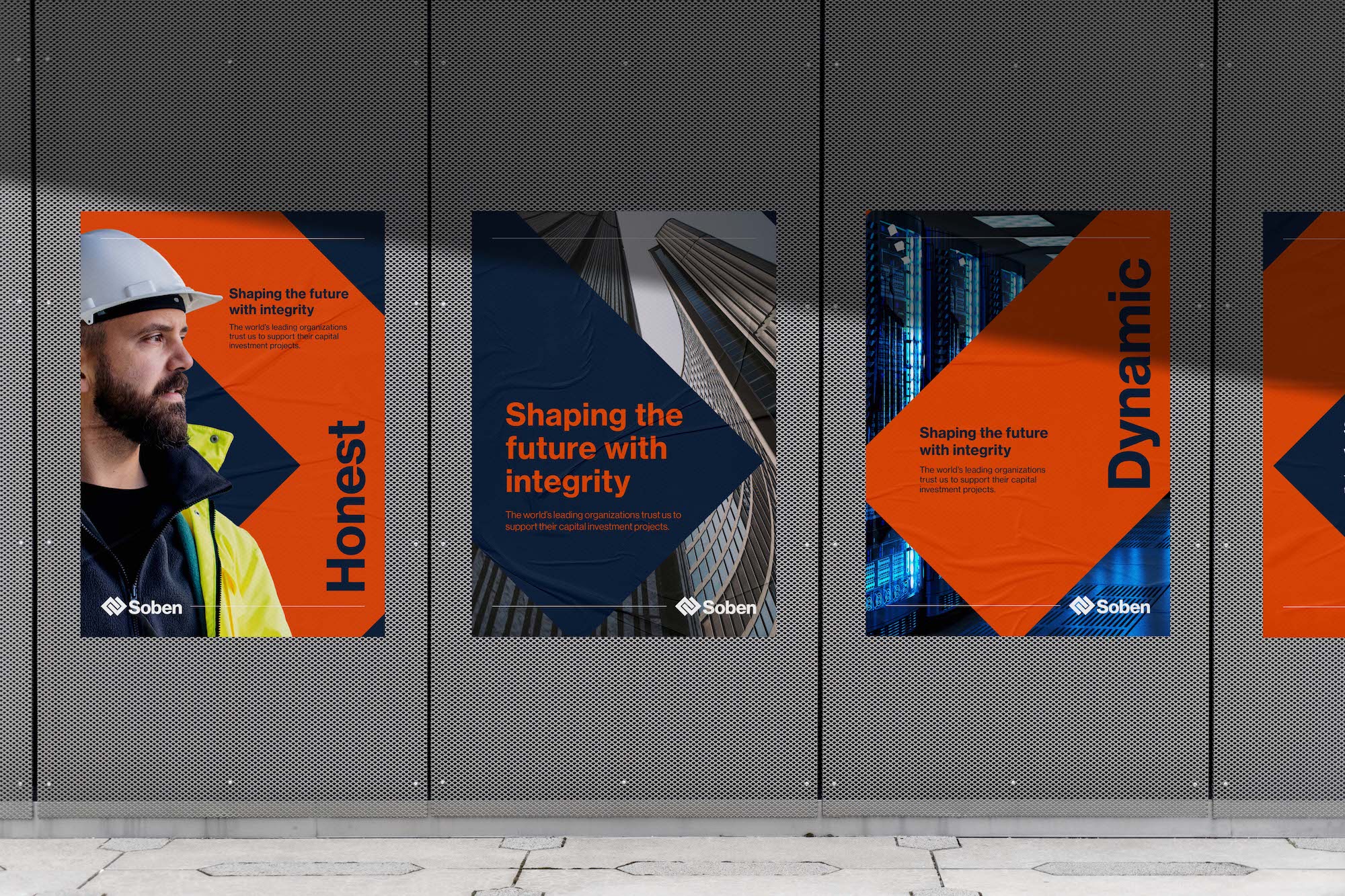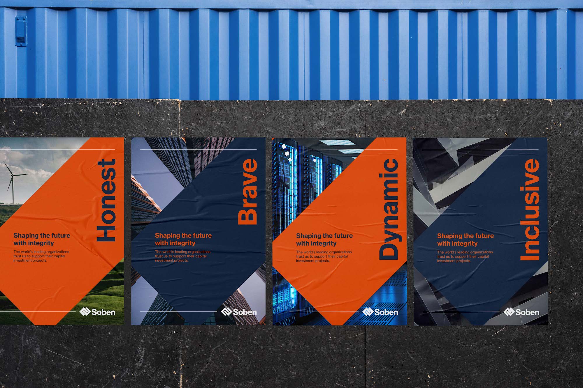 Soben 的新品牌標(biāo)志設(shè)計(jì)突出了他們誠(chéng)實(shí)、勇敢、活力、包容的新核心價(jià)值觀,并引入了新的口號(hào)“以誠(chéng)信塑造未來(lái)”。誠(chéng)信這個(gè)詞通過(guò)透明和道德支持了他們經(jīng)營(yíng)方式的幾個(gè)方面,不從事任何開(kāi)采自然資源的項(xiàng)目。標(biāo)語(yǔ)還經(jīng)過(guò)精心設(shè)計(jì),以平衡 Soben 的責(zé)任精神和目標(biāo)精神,將強(qiáng)有力的建設(shè)信息與建立和加強(qiáng)與真實(shí)人物關(guān)系的原則相結(jié)合。