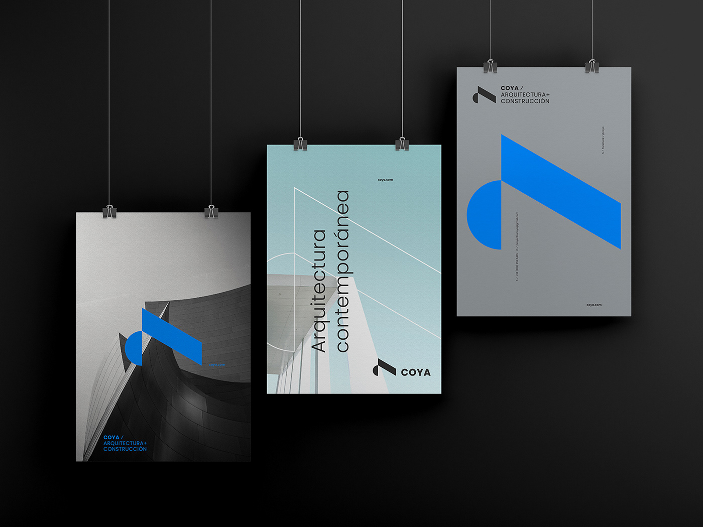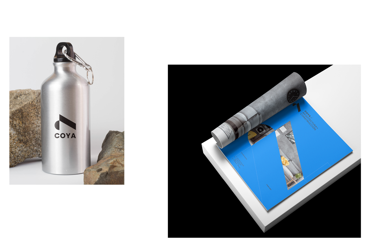 品牌形象設計中該符號代表COYA一詞的字母“C”和“A”,靈感來自極簡主義建筑中使用的基本幾何形狀,并輔以無襯線字體的幾何風格。