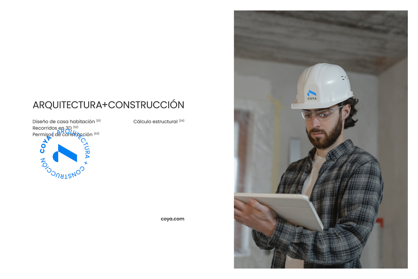 位于塔毛利帕斯的建筑和施工辦公室COYA(Covarrubias y Asociados)提供了品牌形象設計和視覺標識─墨西哥其主要服務包括房屋設計、改建、渲染、建筑許可和結構計算。