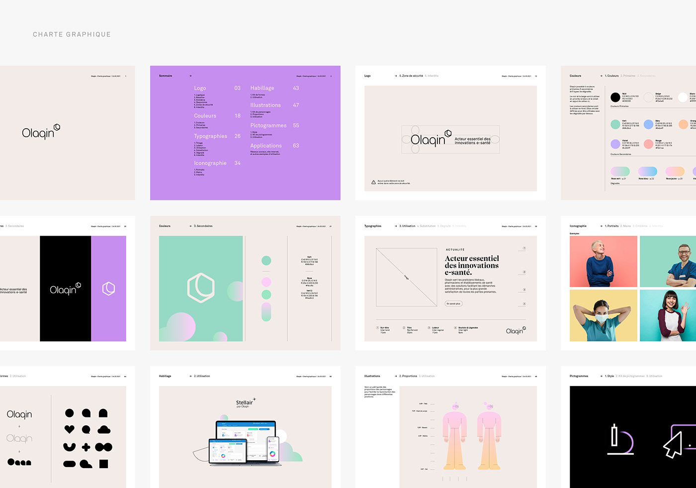 這種形狀詞匯混合了從數(shù)字環(huán)境中提取的醫(yī)學符號和象形圖,以最好地代表 Olaqin 的業(yè)務(wù)部門。