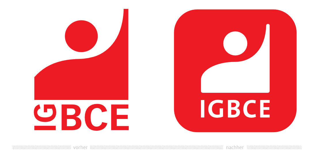 成立于 1997 年的礦業(yè)、化學(xué)和能源工業(yè)聯(lián)盟 (IG BCE) 對(duì)其標(biāo)志設(shè)計(jì)進(jìn)行了修改。該標(biāo)志于10月底在IG BCE工會(huì)大會(huì)上正式亮相。然而,當(dāng)時(shí)用于字標(biāo)的字體隨后再次更改。
