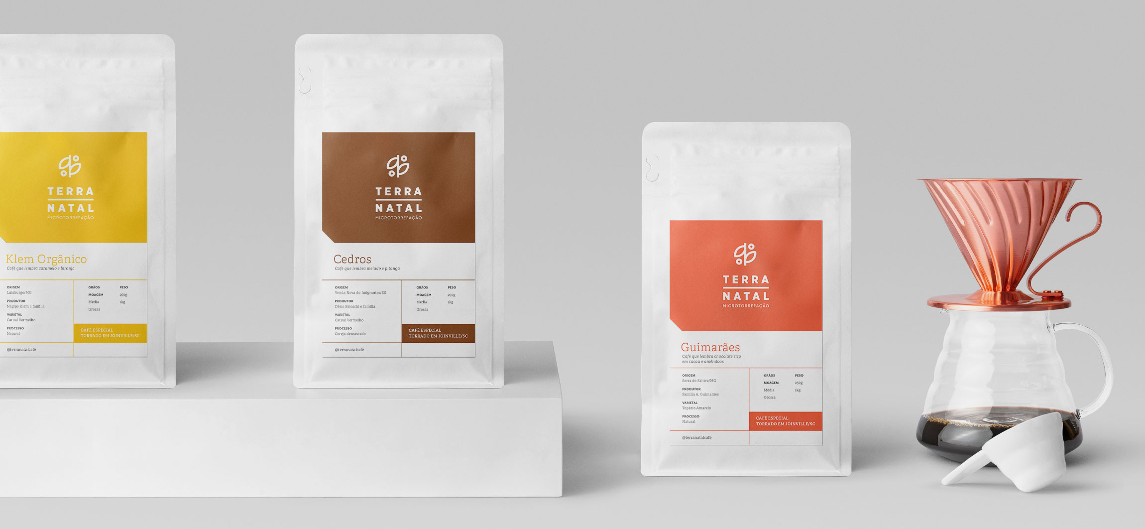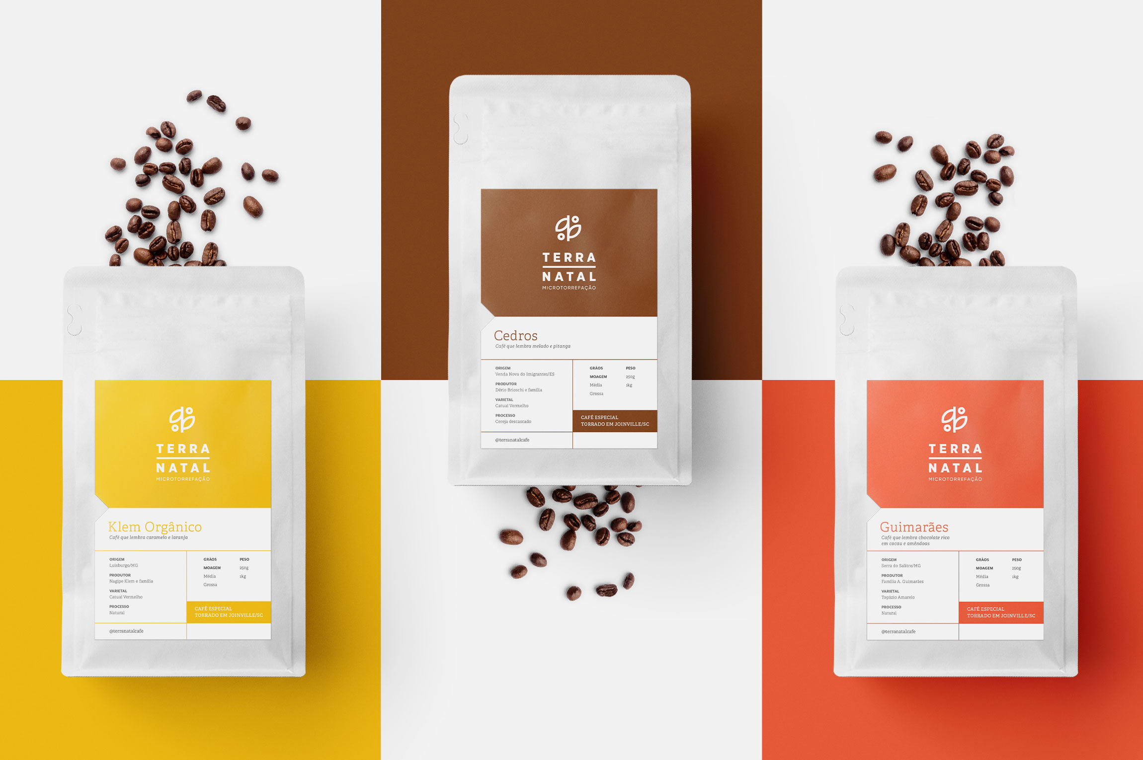 Terra Natal Coffee Roasters 特殊咖啡的包裝設計項目專注于對品牌產生更直接的視覺識別,對產品線進行分類,向消費者傳達感官特征并優化生產流程。