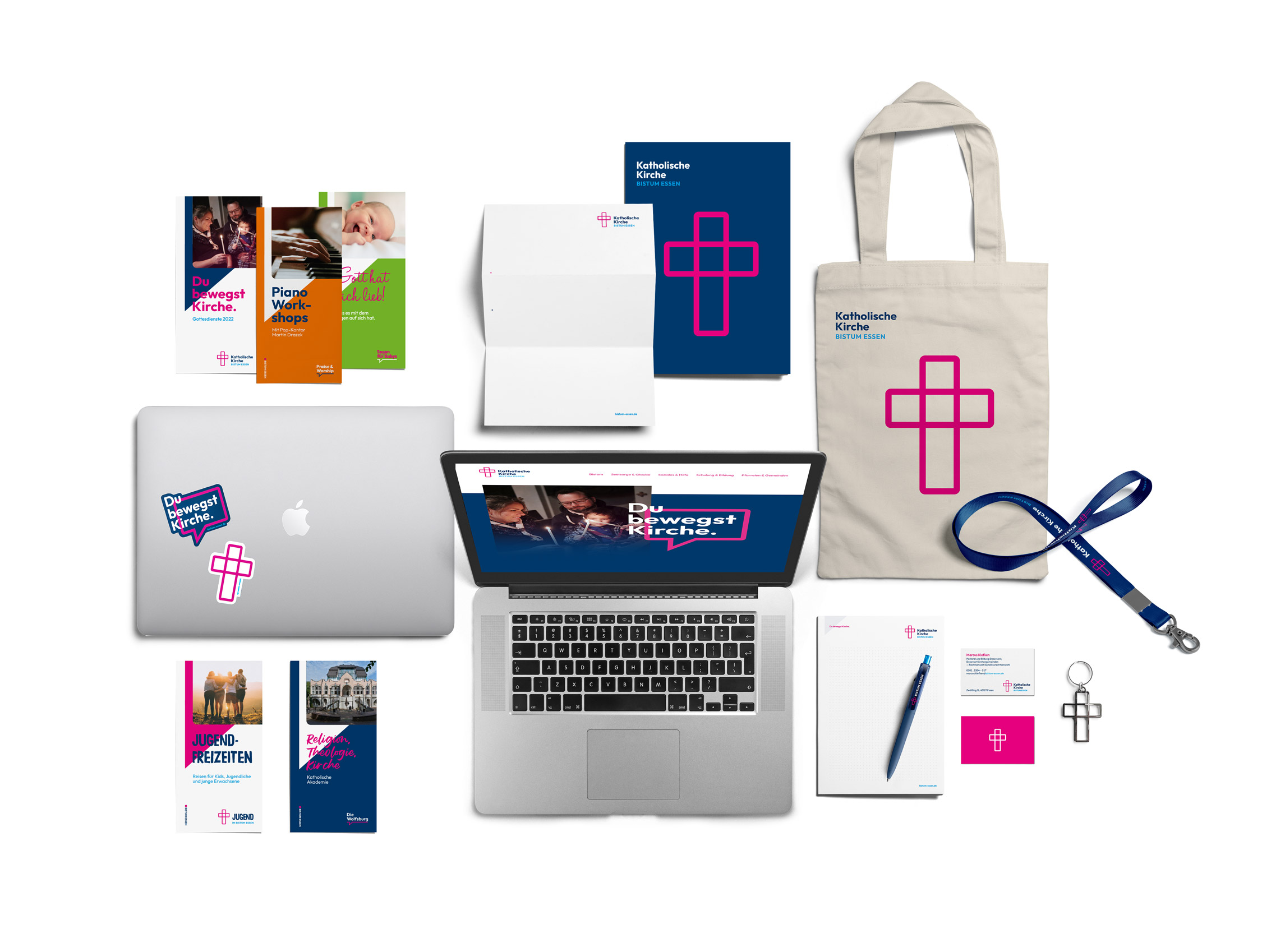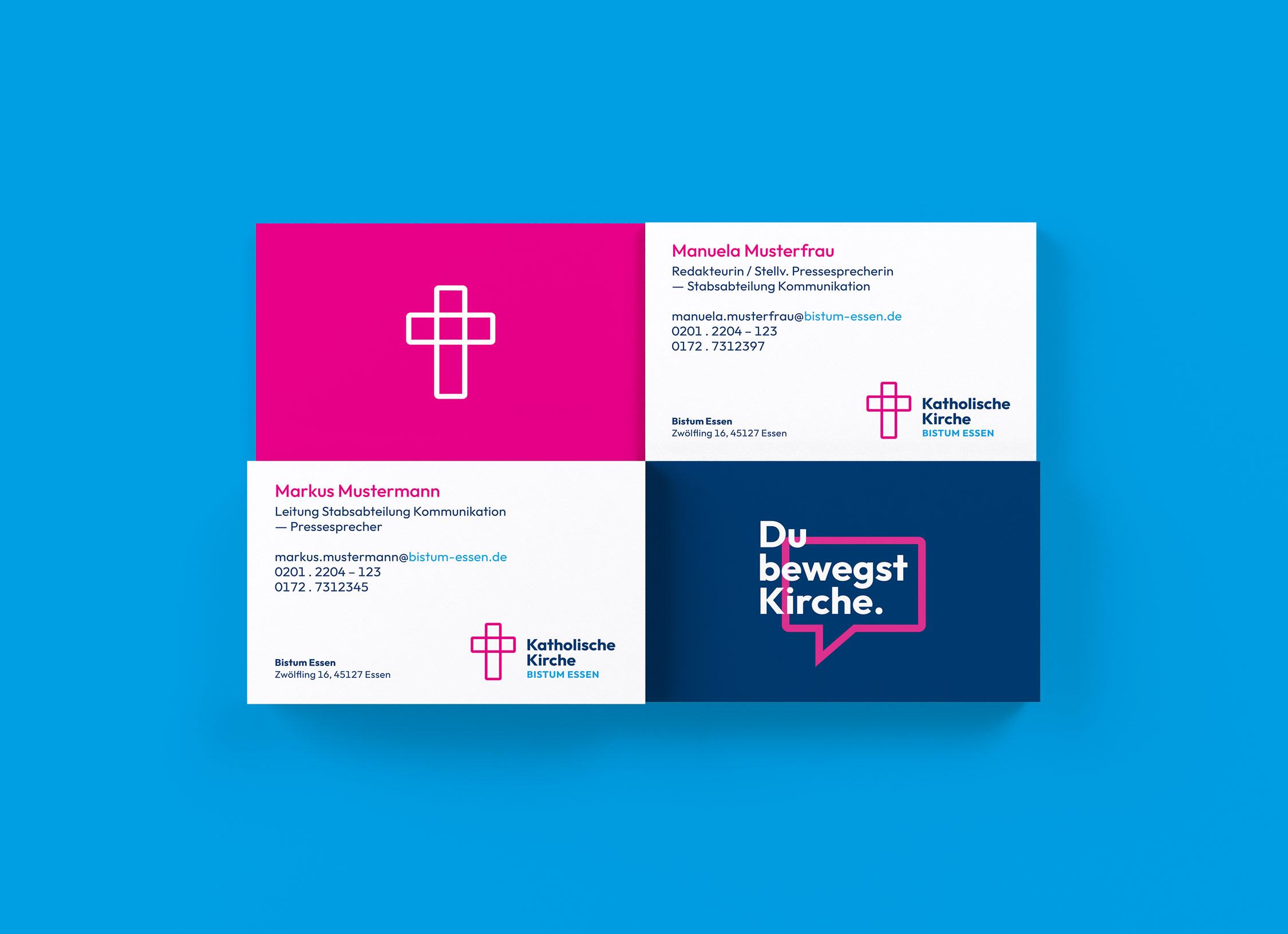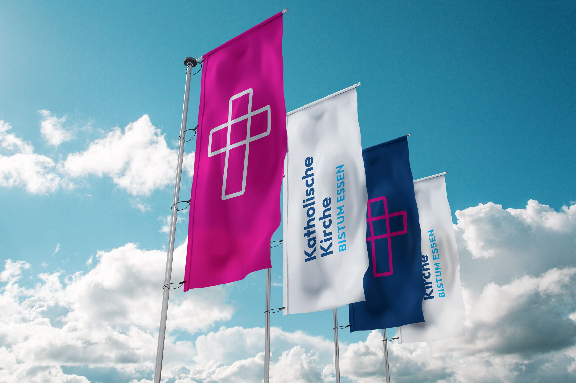 同樣新的是,字母“Bistum Essen”不再是唯一的字標。現(xiàn)在的重點是兩行名稱“天主教堂”。下面是更小的集合名稱“Bistum Essen”。這應(yīng)確保公眾有更好的能見度?!拔覀儾荒茉偌僭O(shè)每個人都知道教區(qū)這個詞的確切含義,”副主教克勞斯·普費弗解釋說。同時,通過十字架和刻字這種開放和更廣泛的象征意義邀請許多組織、機構(gòu)和教區(qū)為自己采用這個標志。“通過這種方式,我們很有可能在與我們教區(qū)的整體多樣性的公共交流中變得更加知名,”副主教說。