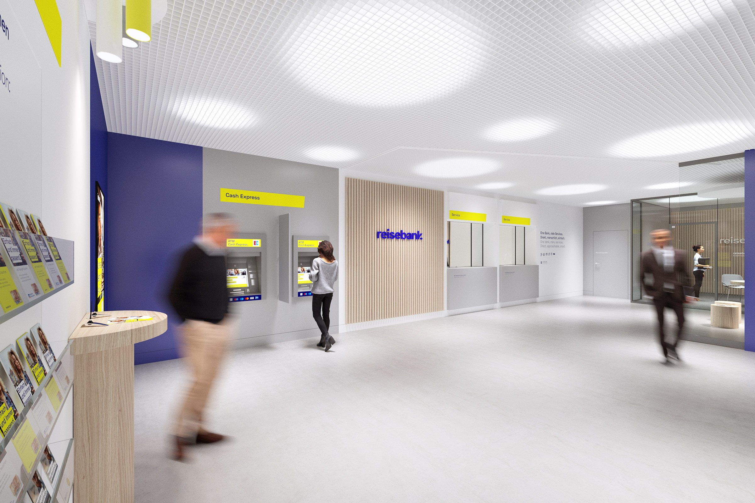 在持續自動化的背景下,自動售貨機被規劃為“小分支”,額外提高了火車站、機場或市中心的品牌知名度。凝聚力和清晰的整體外觀創造了對 Reisebank 的新信任。