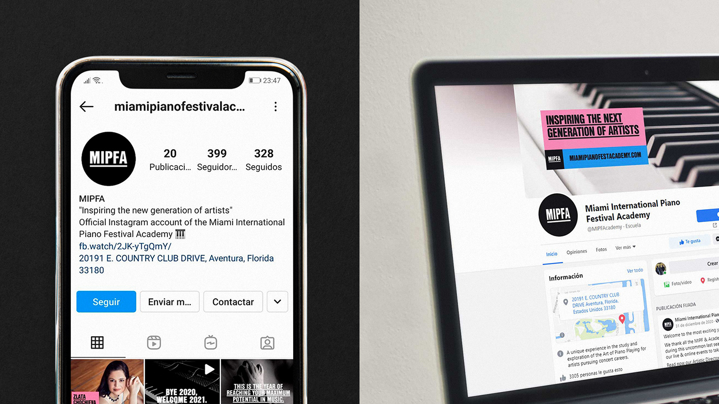 邁阿密國際鋼琴節學院,MIPFA決定創建一個在線平臺,提供世界上一些最好的鋼琴家的課程、現場課程和其他功能。學院需要一個新的身份來重新定位為一個當代和數字化的機構,旨在激勵下一代鋼琴家大師。