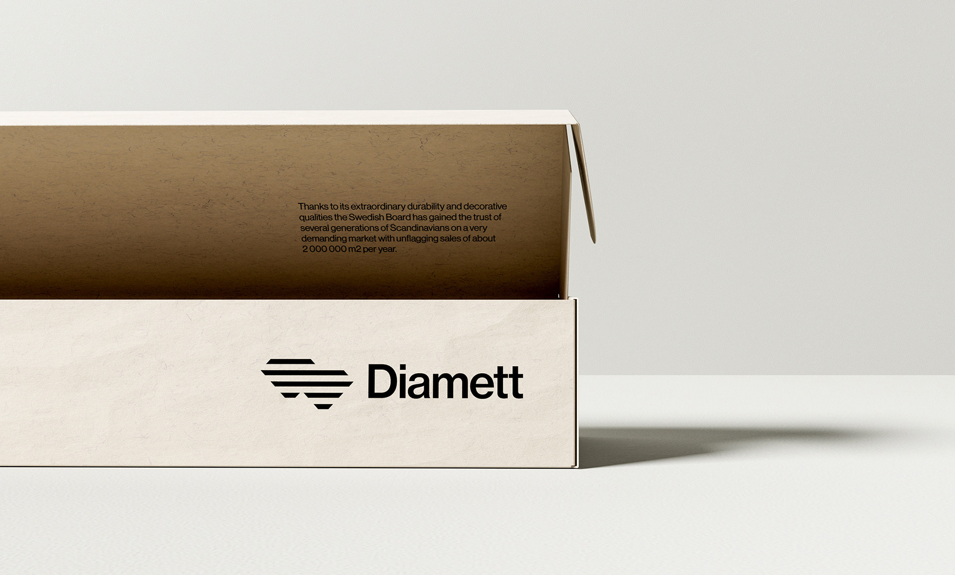 家居行業Diamett地板制造商品牌設計:Diamett是一家高端地板制造商,憑借其名為“瑞典板”的專利解決方案,擁有無與倫比的性能。七毫米厚的高密度HDF芯和八層清漆覆蓋在木材單板上,結果是地板可以承受任何虐待,在顏色和結構上都具有自然的光潔度。該技術還具有環保效益,僅使用1/6平方米實木地板所需的木材,使直徑地板成為可持續發展的選擇,而不會影響質量。一個額外的優勢是地板的導熱率比常規層壓板高63.5%,這使得地板下供暖更有效,更節能。