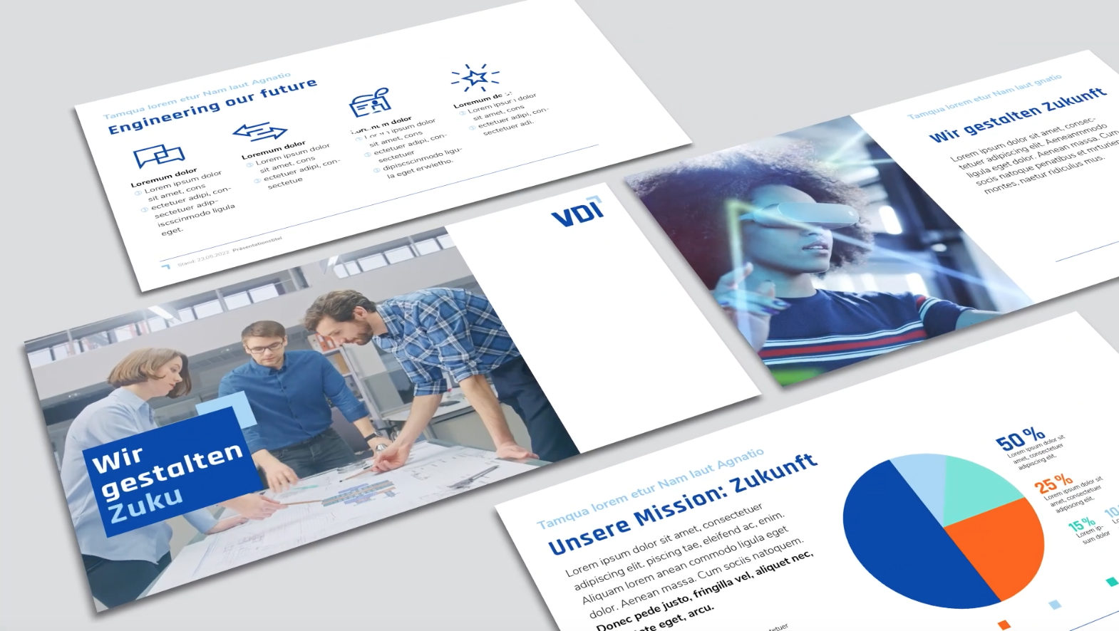 作為重新設計的一部分,徽標、公司色彩、視覺世界以及排版都進行了修改。VDI認為,新的外觀是“動態的和鼓舞人心的”,修訂后的品牌是“能力和創新的力量”。此外,還非常重視以VDI作為品牌家族的屋頂(VDI知識論壇、VDI技術中心等)重新調整品牌體系結構