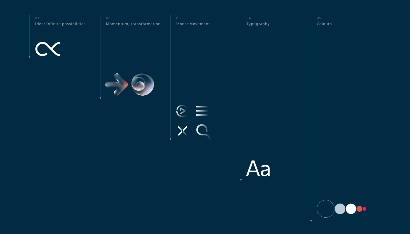 我與Propto的五個合作伙伴一起開發并提供了一個整體的品牌體驗,包括體現“無限可能性”品牌理念的標志設計和戰略框架。這一身份放大了企業的雄心,并將他們定位為變革驅動的創新者,通過自主、選擇和非常聰明的算法來實現客戶的成就。擁抱無限的可能性