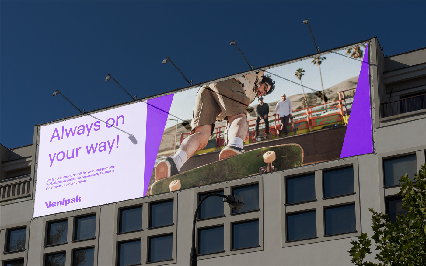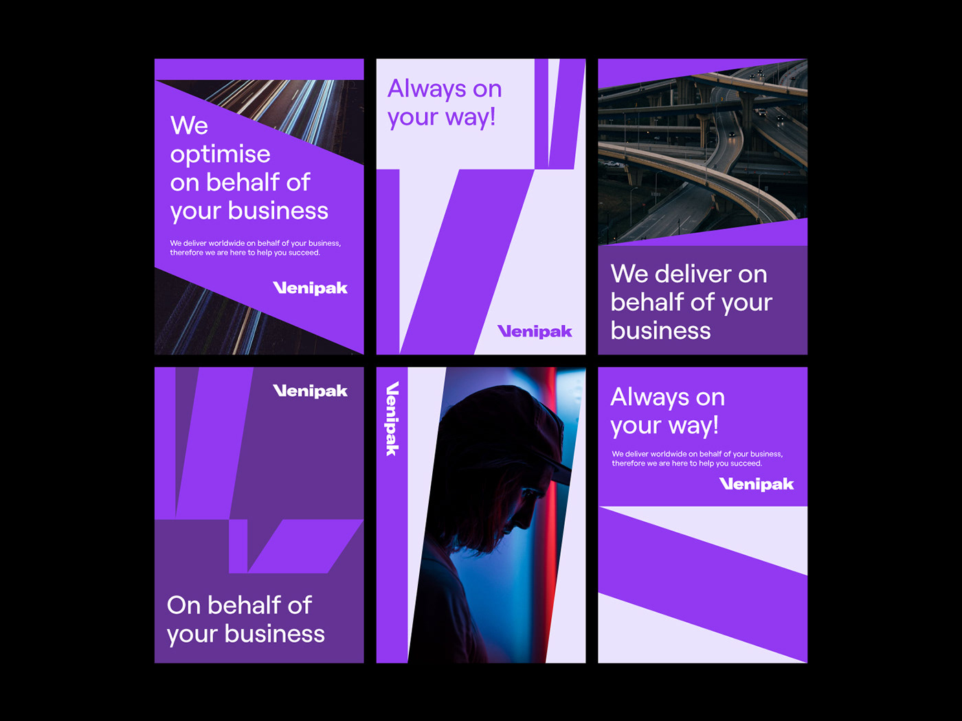 配送服務可以描述為將貨物從原產地運輸到目的地的過程。或者簡單地說,從一個地方到另一個地方的運動。因此,它也與Venipak代表不斷前進、通向未來的目標相呼應。因此,我們通過在標志設計中留下色彩痕跡和元素重復,為這一“轉變”過程創造了一種意義。這就是前進運動如何在大膽、簡單的視覺語言中成為新方向的重要元素。此外,廣場作為遞送包裹的內涵,成為重要的口音。