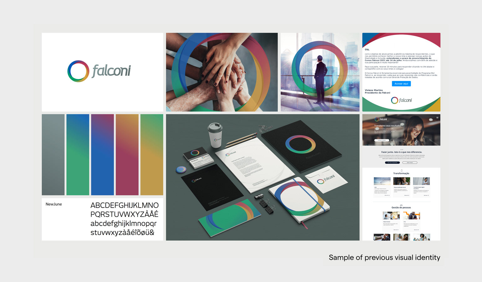 Falconi是巴西最傳統的咨詢公司之一。為了升級他們的品牌形象設計,在他們的類別中有所創新,我們與他們合作,將他們的品牌與更現代的方法r設計他們的品牌定位、標語,并將其轉化為全新的視覺形象和語調。