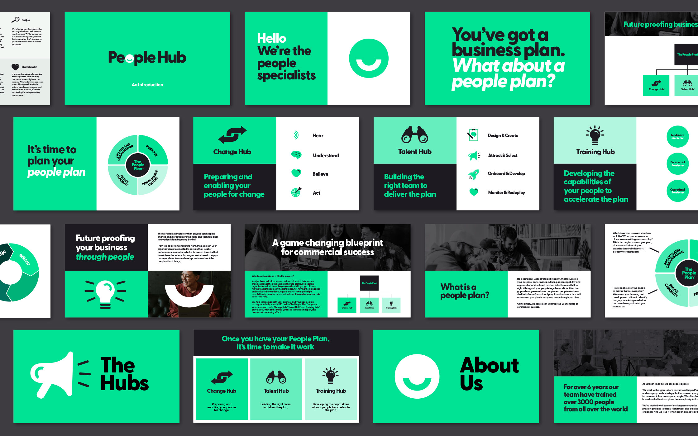人民中心是人民專家,他們找到我們,要求我們徹底重新思考他們的平面設計。在品牌、標志、商業模式和方法。多年來,因為他們的產品發生了很大變化,甚至他們的內部團隊也難以向不斷增長的客戶群闡明他們的服務。我們舉辦了品牌研討會,并將他們所做的一切都提煉成一個基于“人員計劃”的清晰新商業模式,這是一個改變游戲規則的成功藍圖。然后,我們創建了一個大膽的新品牌和調色板,徹底改變了公司及其所有通信。