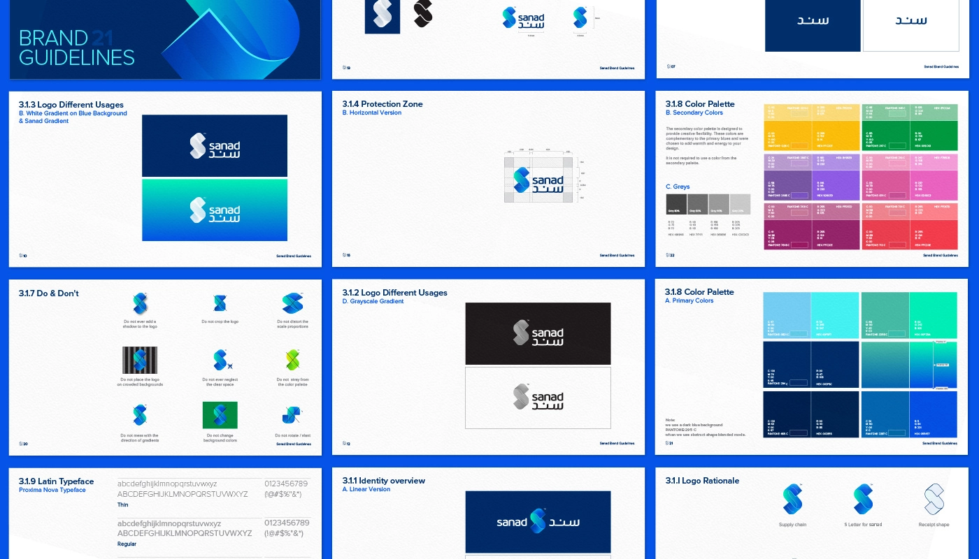歐米布蘭德,該機構為Sanad開發了一個富有創意和有意義的VI設計和徽標概念,其中包含公司商業模式的關鍵元素。該標志最突出的特征是字母S,它旨在代表連接企業與快速消費品制造商和批發商的供應鏈。同時,S還暗示了沙特阿拉伯貨幣SAR,為設計增添了一絲當地特色。