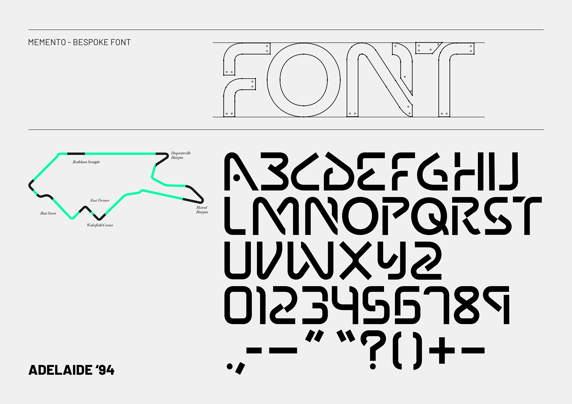 采用了標志性的賽道及其著名的彎道和直道,為Memento創造了一個定制的字母組合和字體,它提供了一種運動和動作感,而不是將自己與F1單獨聯系在一起,而是具有運動本身提供的精度和工藝水平。字體中的每個字母和字符都從阿德萊德軌道上剪下來,重新用作反映品牌所做的事情的字體結構,精確定位和重新定位以制作品牌的每個元素。