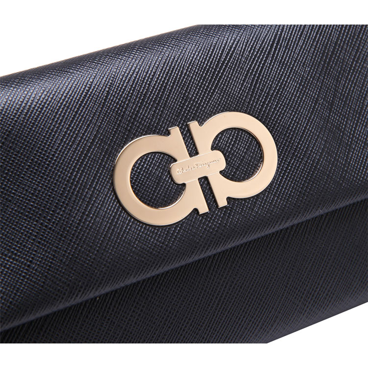 LOGO設計內涵:Ferragamo菲拉格慕標志源自創始人Salvatore Ferragamo名字,裝飾在皮件上的金色扣環Ω一直是辨認FERRAGAMO皮具、鞋子甚至發飾配件時最明顯的標志。而這個金屬扣環幾乎每一季都有顏色上的變化。