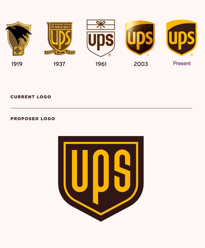 2003 年,FutureBrand將標記簡化為盾牌。設計師Allan Peters覺得此次標志升級失去了讓人難忘的東西。所以決定重新審視UPS的標志,嘗試恢復之前的靈魂。并保羅·蘭德設計的標志基礎上簡化了包裝。重新創建了一個較強應用性的品牌系統。