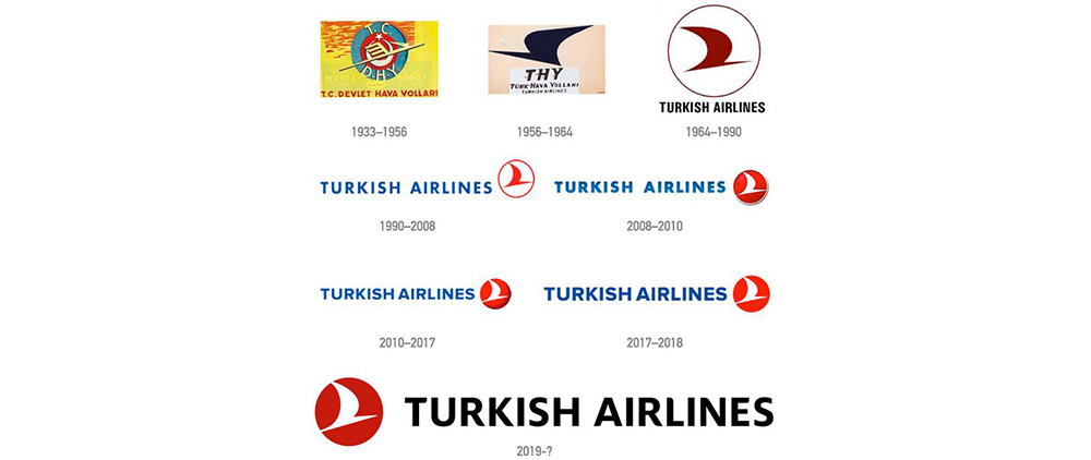 在之前的品牌標識中,航空公司的名稱以粗體、無襯線字體(藍色)顯示在左側,紅色的圓型字體(白色)顯示在右側中間的抽象鳥類圖像。據《國家地理》雜志報道,土耳其航空公司在1956年將大雁選為公司的吉祥物,因為它是世界上“飛得最高的鳥”,最高可達8850米。1964年在LOGO中增加圓形外框和土耳其國旗的紅白配色一致的新配色。在之前的圓形中使用漸變讓紅色調變深和變淺,產生三維立體效果。